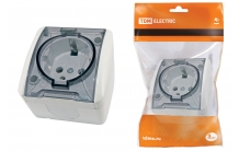Розетка 2П+3 открытой установки IP54 16А с прозрачной крышкой белая "Селигер" TDM
