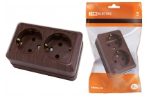 Розетка двойная 2П+З открытой уст. IP20 16А, бук "Ладога" TDM