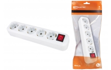 Колодка розеточная 5 гнезд 2П+3 с выключателем16А 250В белая TDM